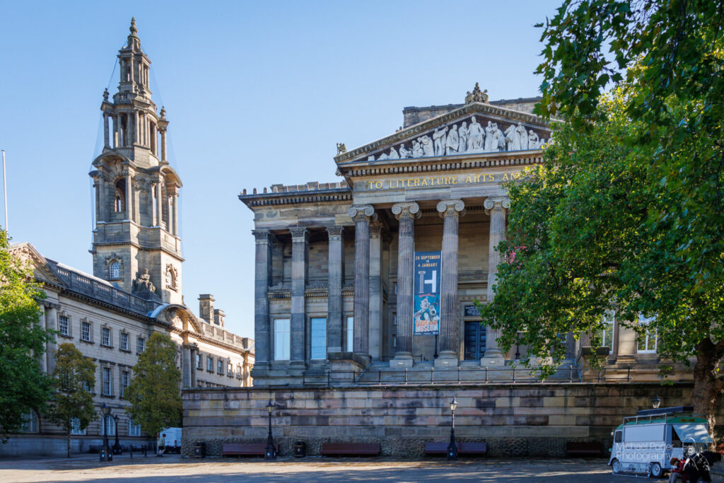 The exterior design of the building reflects Hibbert’s vision of a neo-classical museum and art gallery. This style is paralleled in other European public buildings including the British Museum in London and the Konzerthaus in Berlin. The main difference in the design is the decision not to construct a set of front steps directly from the busy Market Square but to have two entrances from either sides of the building.