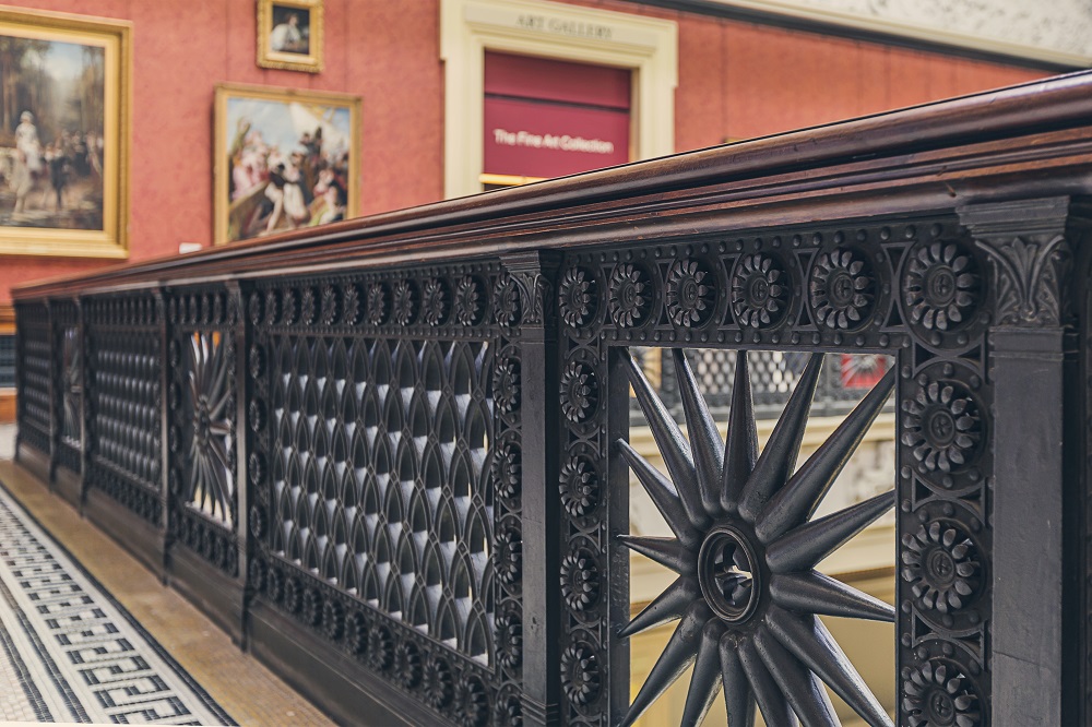 The exterior design of the building reflects Hibbert’s vision of a neo-classical museum and art gallery. This style is paralleled in other European public buildings including the British Museum in London and the Konzerthaus in Berlin. The main difference in the design is the decision not to construct a set of front steps directly from the busy Market Square but to have two entrances from either sides of the building.