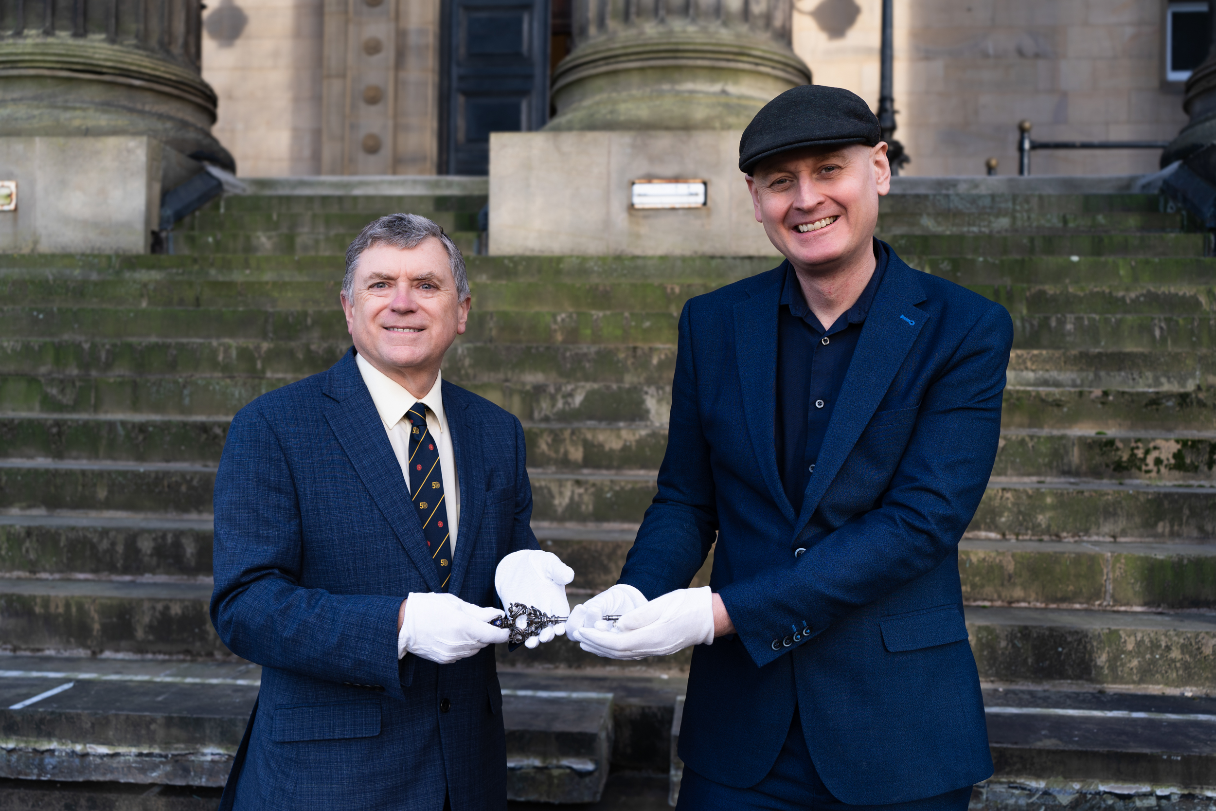 From left to right: County Councillor Peter Buckley, Cabinet Member for Community and Cultural Services at Lancashire County Council and Councillor Matthew Brown, Leader of Preston City Council holding the ceremonial Harris key.