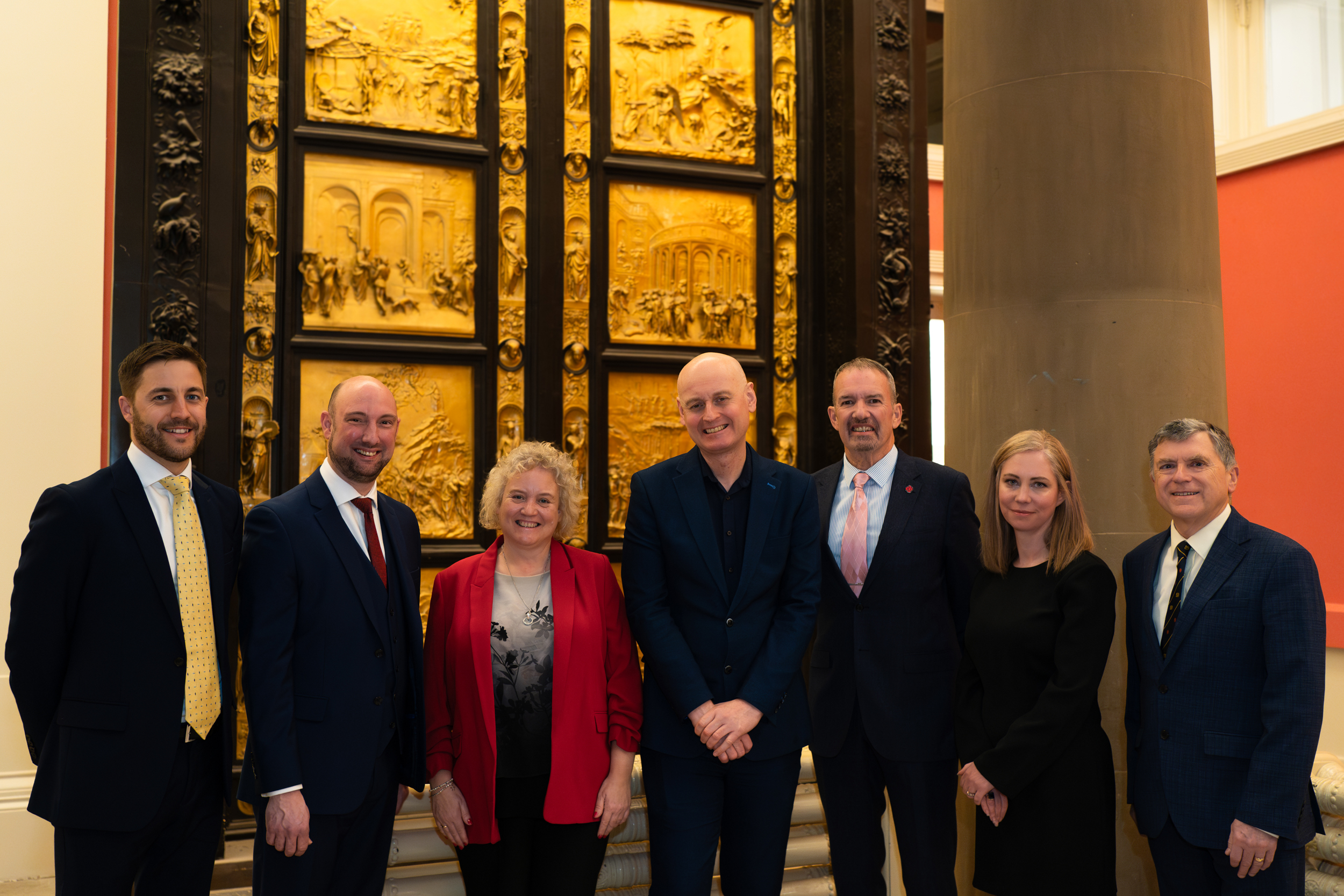 From left to right: Harry Coughlin, Director, The Hub Consulting Limited, Timothy Joel, Assistant Director (Head of Culture) at Preston City Council, Councillor Anna Hindle, Cabinet Member for Culture and Arts at Preston City Council, Councillor Matthew Brown, Leader of Preston City Council, Michael Conlon, Chairman of Conlon Construction, Sarah Threlfall, Deputy Chief Executive and Director of Community and Wellbeing at Preston City Council, County Councillor Peter Buckley, Cabinet Member for Community and Cultural Services at Lancashire County Council.